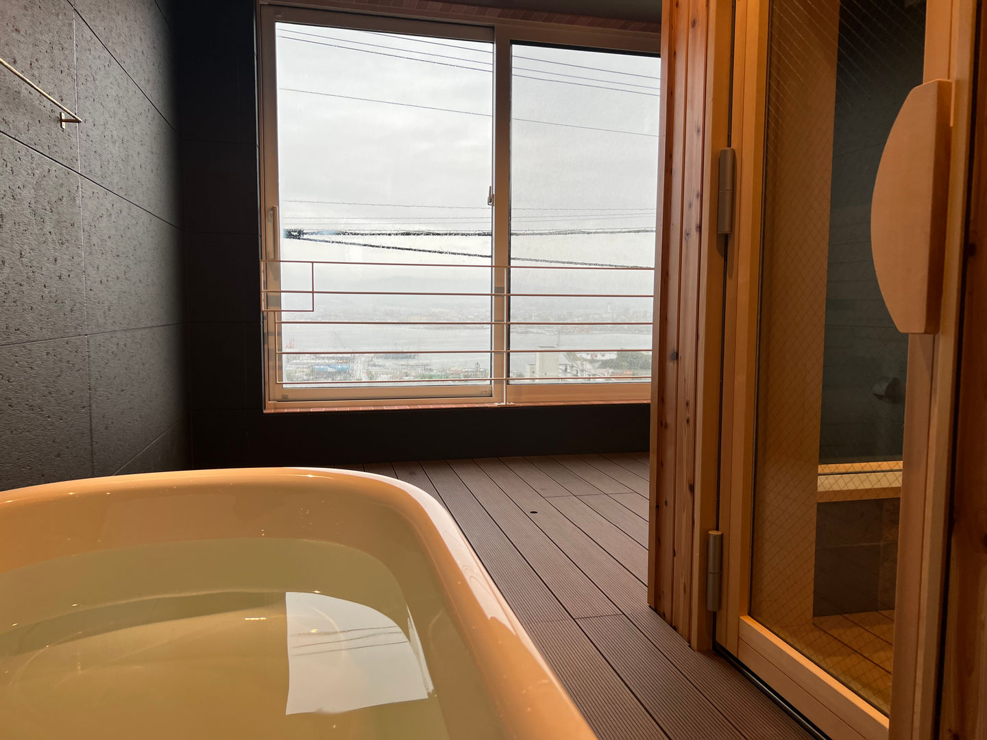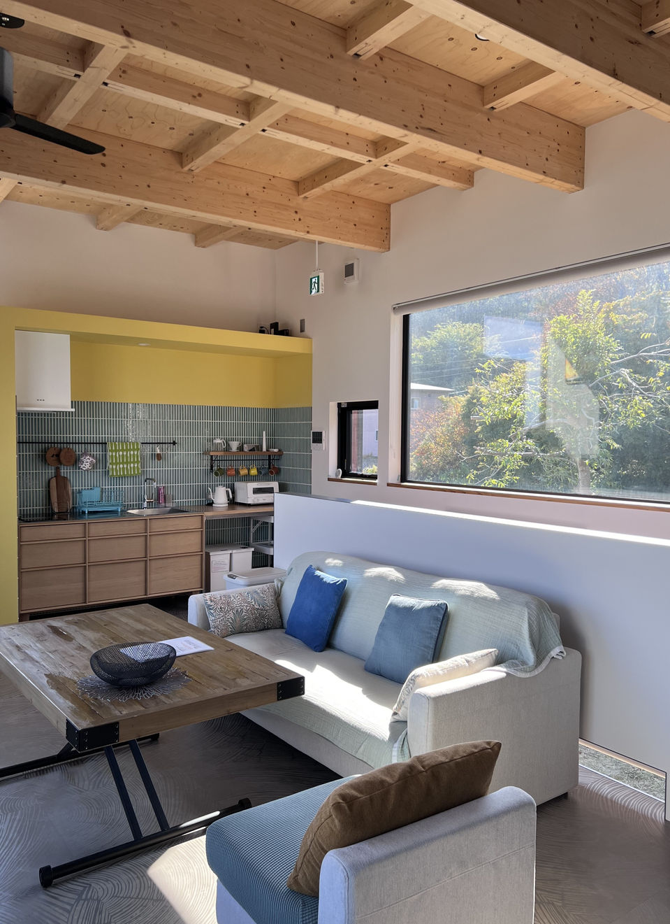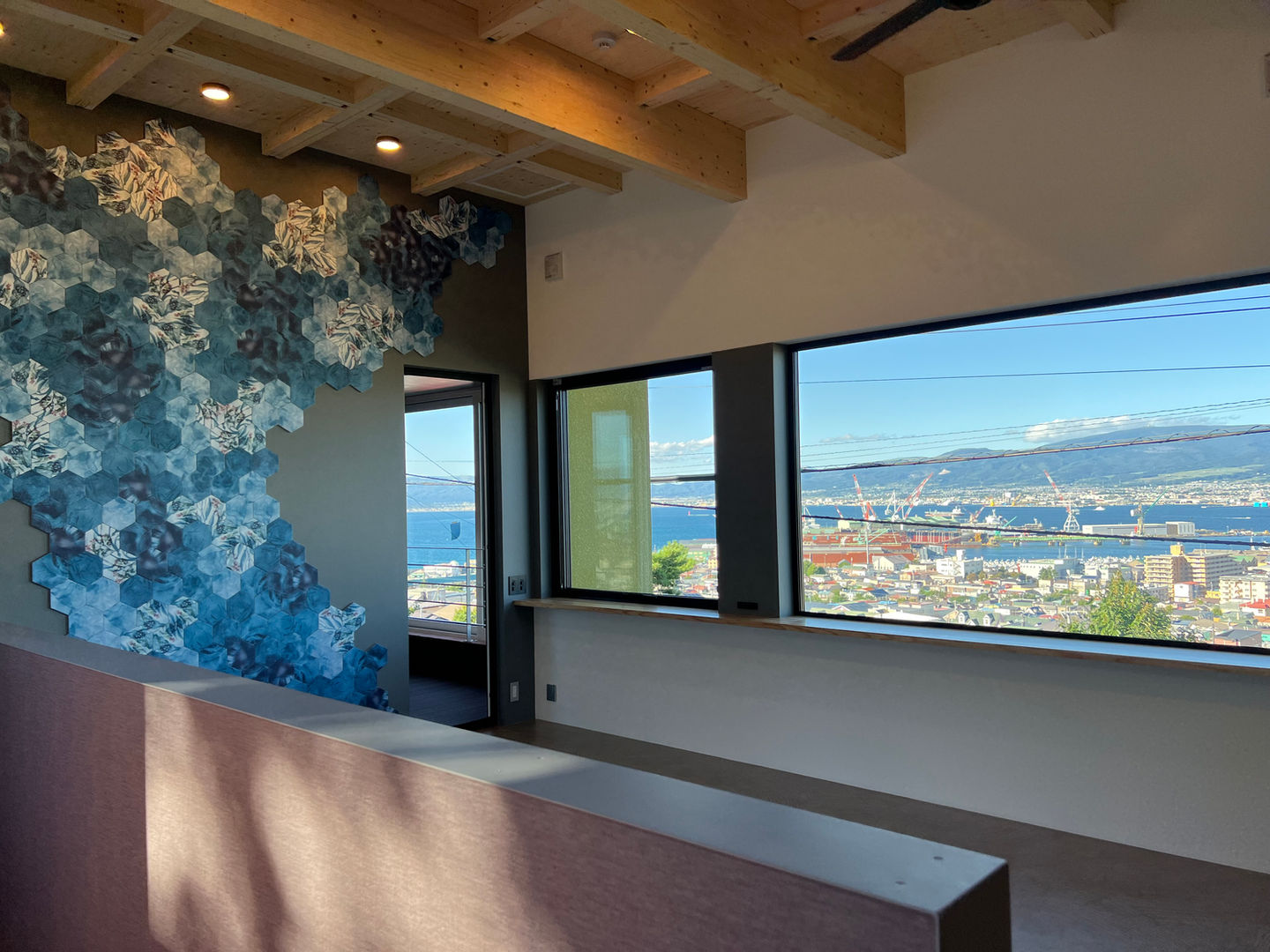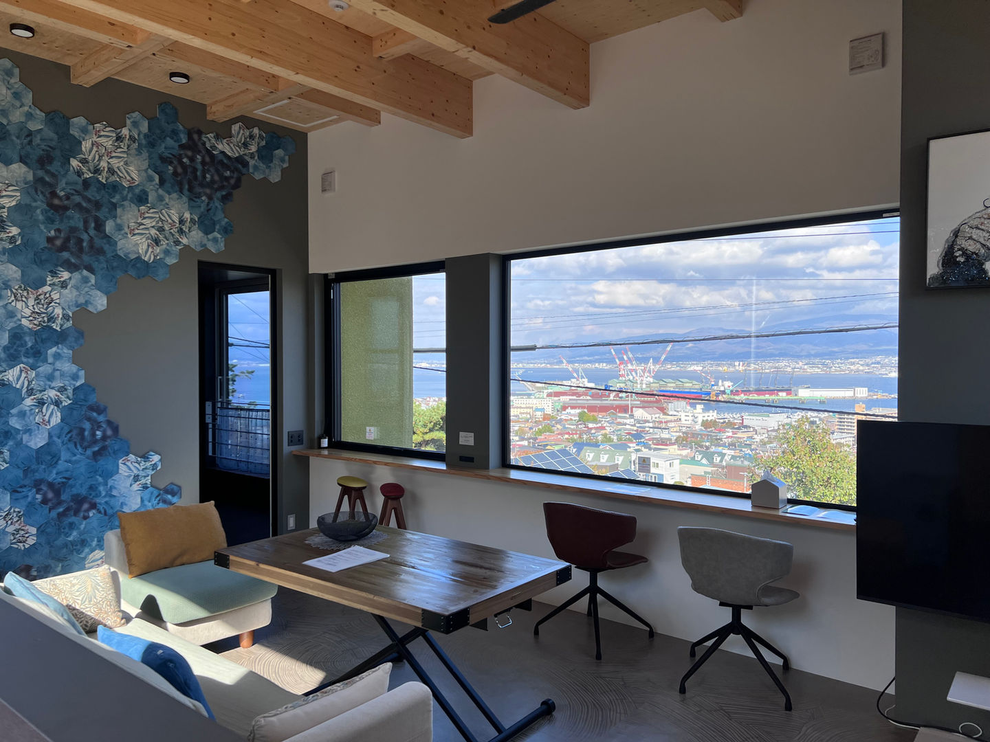 函館市内一望の景色を堪能しながら楽しむサウナやリビング、使い方は自分次第な1階アトリエラウンジなど遊び心満載な躍動する内装デザインです。